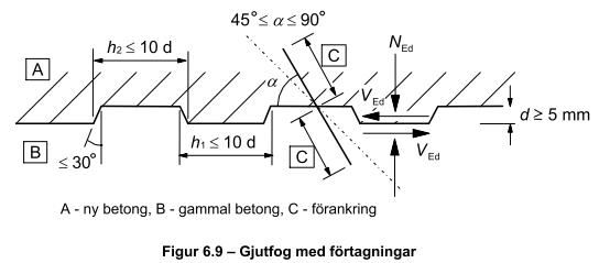 1) Metoden i EN 1992-1-1 7.3.4 är i första hand avsedd för beräkning av sprickbredd vid armeringstöjning orsakad av last. Den är således inte lämpad för sprickor på grund av förhindrad krympning eller inre tvång, om vid temperaturökning vid härdning. För sprickor på grund av förhindrad krympning eller annan tvångsinverkan hänvisas i stället till EN 1992-3, bilaga L och M.